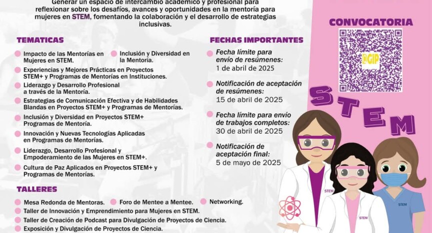 Este evento está dirigido a estudiantes, docentes e investigadoras interesadas en las mentorías en STEM, la equidad de género y el desarrollo de proyectos en ciencia, tecnología, ingeniería y matemáticas. Se compartirán experiencias y estrategias para fortalecer el liderazgo femenino en estas áreas.